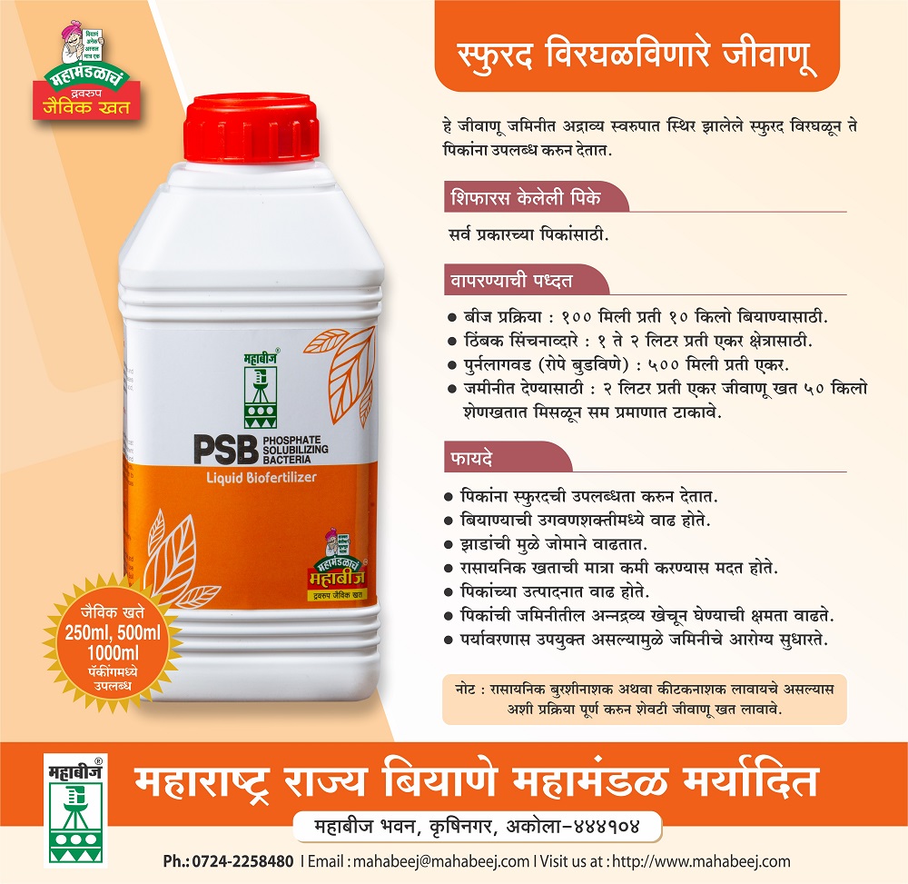 PSB सूक्ष्मजीव जमिनीतील नैसर्गिक आणि बाहेरून दिलेल्या फॉस्फरसच्या विद्राव्यीकरणात आणि शोषणात प्रमुख भूमिका बजावतो.